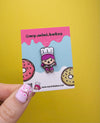 Express your love for Mini Bakes with this cheeky Mini Bakes Enamel Pin Badge.